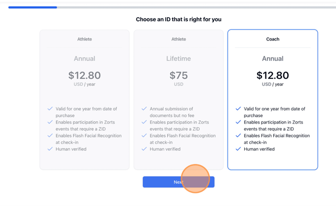 Below are step-by-step instructions on how to purchase a ZortsID for Coaches for your upcoming event.