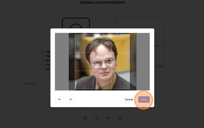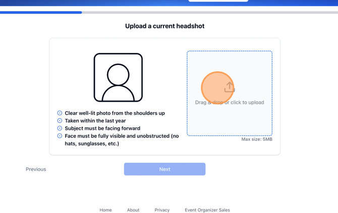 4. Click to upload an acceptable headshot photo, following the guidelines laid out.