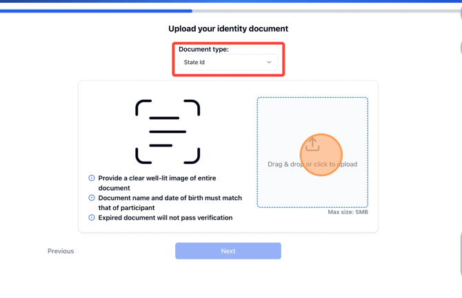 4. Select the type of identity verification document being used.