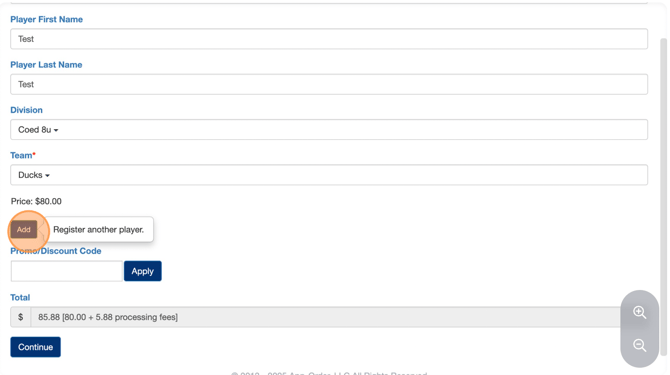 a. If you are registering more than one participant, click 'Add'.
