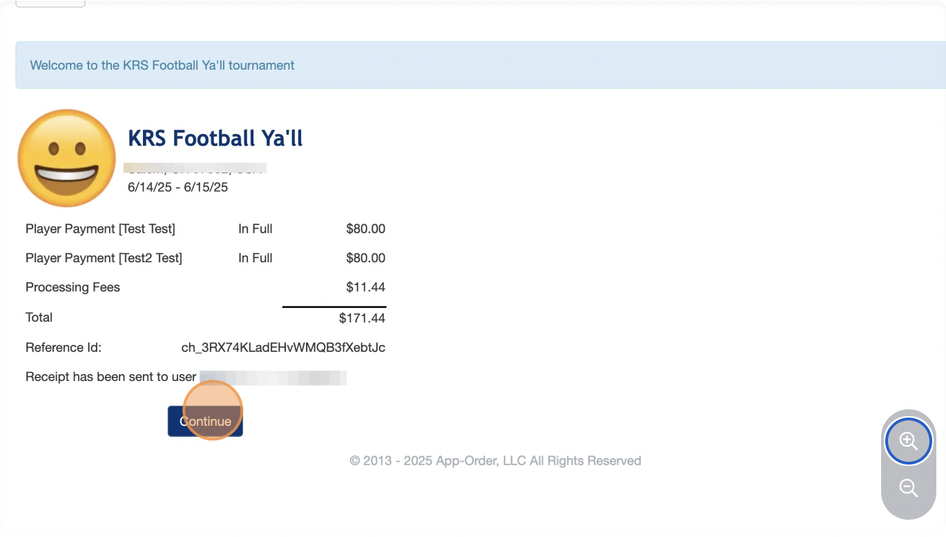 7. Once the registration payment is complete, you’ll receive an emailed receipt and the participant will appear on the roster.